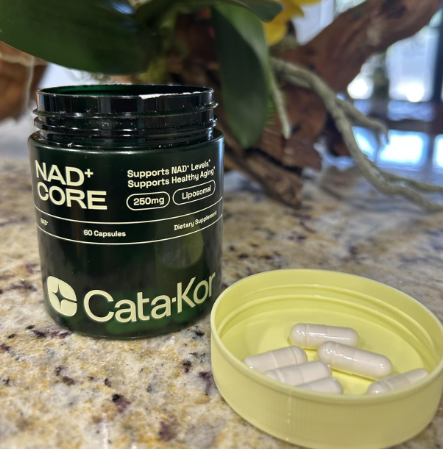 Cata-Kor es una fórmula con ingredientes naturales que ayudan a mantener tu piel joven, el cabello fuerte y las uñas sanas. Su combinación con NAD+ Core estimula la producción de colágeno y mejora la apariencia general de la piel, dándole un toque más firme y luminoso.